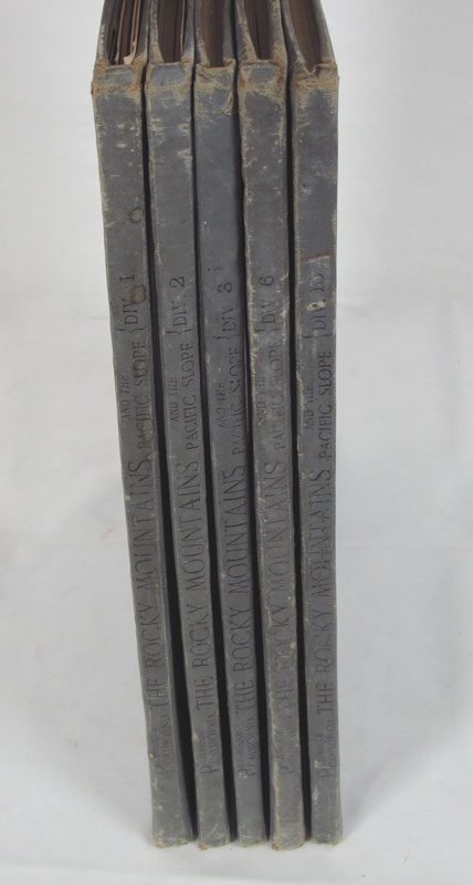 5 VOLUMES PICTURESQUE CALIFORNIA BOOKS: ''Picturesque California, The Rocky Mountains and the Pacific Slope'' edited by John Muir, volumes 1, 2, 3, 6 and 10, published 1888. Folio size, illustrated with etchings, photogravures, wood engraves and more. Each volume 1/2'' x 16'' x 12 1/4''.