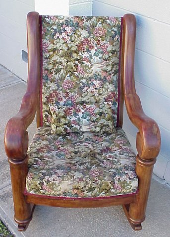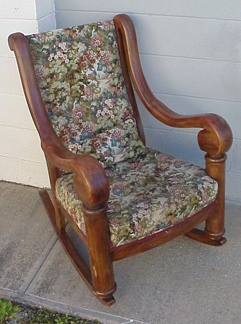 A MOST SUBSTANTIAL EMPIRE PERIOD ROCKER: Upholstered in a fine tapestry fabric.