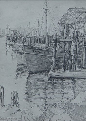 SET OF 3 NEW ENGLAND PENCIL DRAWINGS: Needham, East Gloucester, and Annisquam, all titled and dated 53, 7 1/2'' x 9 1/2'' sight size and two 9 1/2'' x 7 1/2'' sight size.