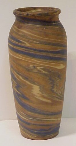 NILOAK MISSION SWIRL POTTERY VASE: Swirls of teal and shades of brown. 9''h, impressed mark.