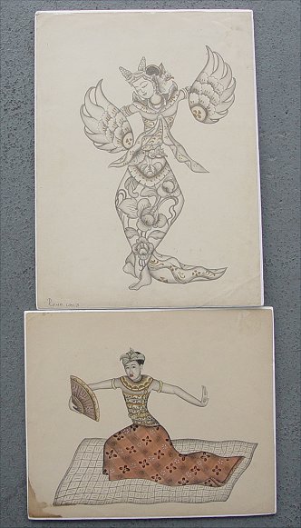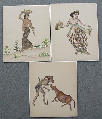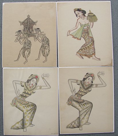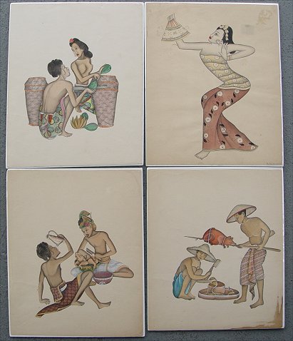 SET OF 13 BALI W/C: Nudes, Erotics and Religious depictions, circa 1930's, several signed. Sold as a lot.