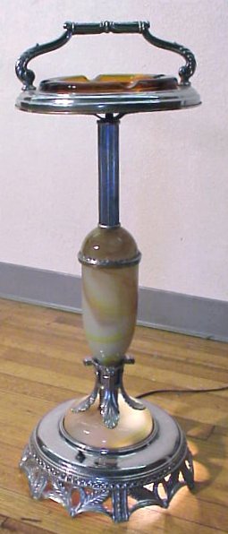 ART DECO SLAG GLASS SMOKE STAND: Ashtray stand with an illuminated slag glass base. Approx. 29''h.