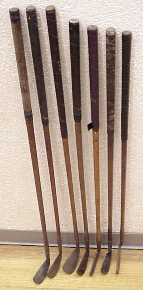 7 SCOTTISH HICKORY SHAFT GOLF CLUBS