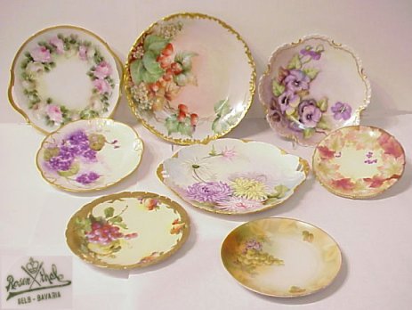 ESTATE COLLECTION OF DECORATIVE FINE CHINA PLATES: Fruits and flowers on an array of Limoges, Bavarian, Austrian, and Rosenthal plates, 7 1/2'' - 12'' dia.