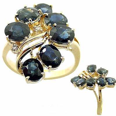 5.52CT SAPPHIRE & DIAMOND RING: This stunning ring features seven large oval blue sapphires in a cluster style accented with diamonds, set in 14k yellow gold. Retail Value $1299.00