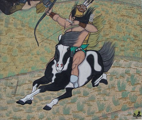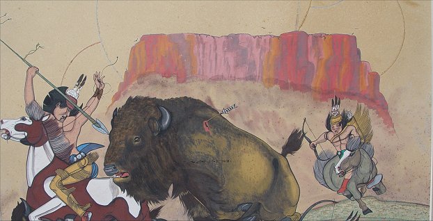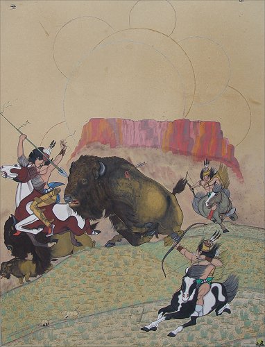 TAHOMA, Quincy, (American, 1921-1956): Buffalo hunt, Gouache on heavy paper, 28'' x 23'', signed lower right, dated 45.
