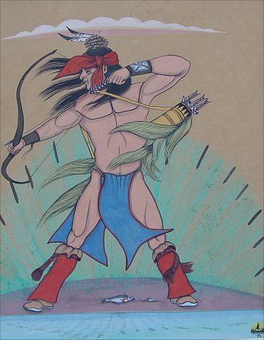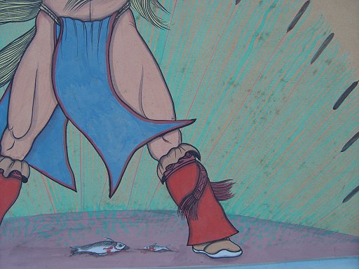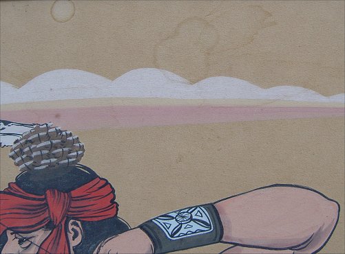 TAHOMA, Quincy, (American, 1921-1956): ''Fishing'', Gouache on thin cardboard, 17 3/4'' x 15'', signed lower right, dated 1945, titled in pencil verso ''By Quincy Tahoma Navaho artist of Santa Fe''. Condition - Some water spots in upper portion and right margin, minor foxing.