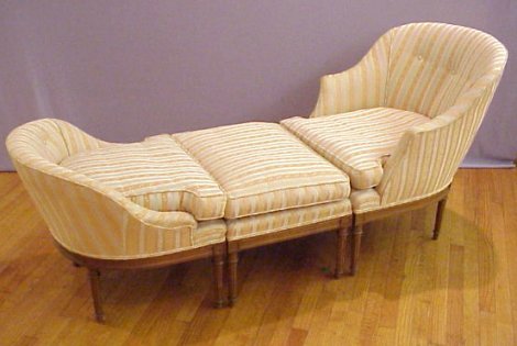 CHAISE LOUNGE: Mid to late 20th C. 3 part chaise- Seat, ottoman type middle section and end section with lower back. All of these parts are able to stand on their own right. Recently re-upholstered. 78''l.