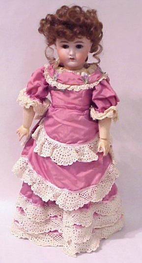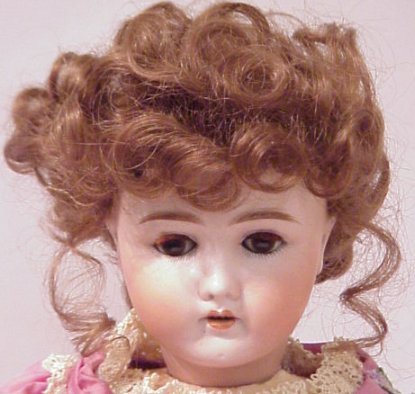 GERMAN BISQUE HEAD DOLL: Sleepy brown eyes, open mouth shows teeth, fiery red curly hair. Fully jointed composition body. Head marked B 5 / Germany. Approx. 24''h.