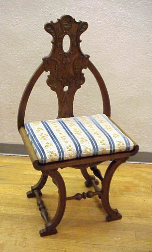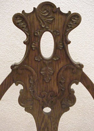 OAK SAVONAROLA TYPE CHAIR WITH CARVED BACK