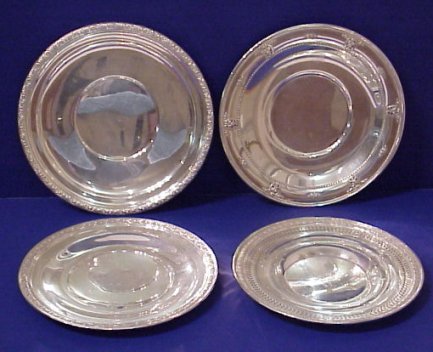 GROUP OF 4 STERLING TRAYS: International ''Prelude'', 10 1/2'' dia.; Wallace ''Rose Point'', 10 1/8'' dia.; Quaker Silver Co., 9 5/8'' dia.; and an unidentified tray, 9 1/4'' dia. Approx. 32 oz. total.