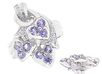 TANZANITE & DIAMOND RING: This large yet feminine ring features lovely lavender tanzanite rounds set into 3 flowering clusters (3 in each, 9 total pieces, .95ctw) with a spray of diamonds, all set into a wide ribbed band of 14k white gold. These are very clean medium color stones set in a substantial yet romantic style. Retail Value $910.00