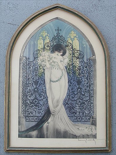 ICART, Louis, (French, 20th C): ''Tosca'', Color Etching, 20 1/2'' x 13'', pencil signed lower right, #'d lower left 305, dated 1928, windmill stamp lower left, encased in original frame. Condition - Crease/tear in left margin, 3 1/2'' horizontal tear around her mid-section.