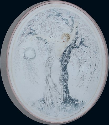 ICART, Louis, (French, 20th C): ''L'Arbre'', 18'' x 14 1/4'', signed lower right, dated 1924. Condition - Staining along margins, several scrapes, bearly visible but fading to color throughout.