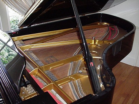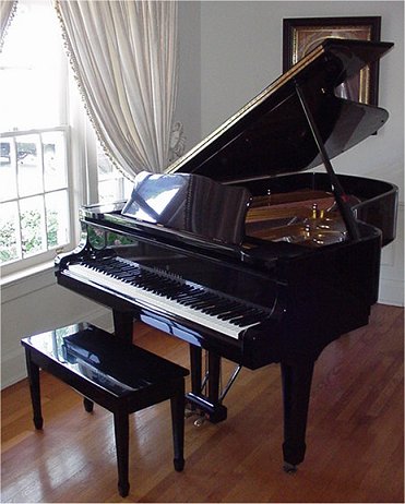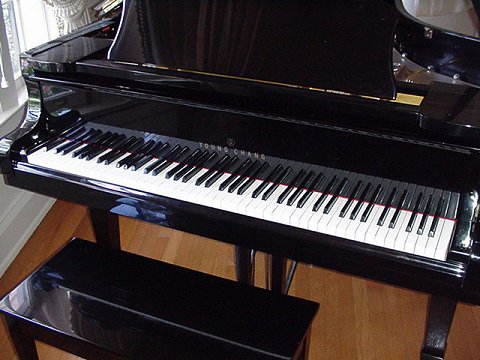 Lot 81) YOUNG CHANG CLASSIC GRAND PIANO: Model G213, in highly polished black. 7'l, sold with matching bench.