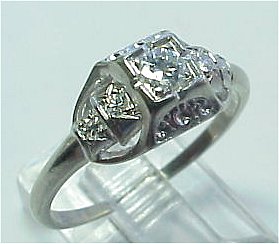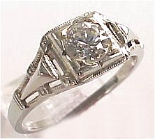 NOUVEAU STYLE DIAMOND RING: Diamond of approx. 1/2ct, I1 clarity, G color, set in nouveau style filigree mount of 18k white gold. Approx. size 5 1/2. Sold with August 2003 GIA gemologist appraisal, retail replacement value $1300** | 350 |