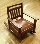 CHILD'S LIMBERT ROCKER: 5 vertical slats, drop in seat with later upholstery. Light coat over original finish. Branded mark. Approx. 24 1/2"h, 22"w. | 425 |