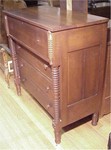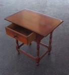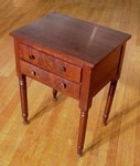 18TH C NEW ENGLAND CHERRY TAVERN TABLE: Ca. 1750-1780. Overhanging top, over drawer table with turned legs, 4 stretchers. Pegged construction. The drawer runners have been replaced and perhaps a new drawer bottom Ca 1820. 26 1/2"h x 27"w. | 550 |