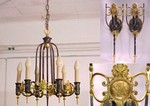 PEWTER AND GILT BRONZE 5 LIGHT CHANDELIER WITH MATCHING SCONCES, CA 1920's | 750 |