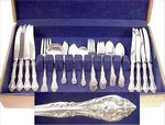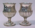 S. KIRK & SON STERLING GOBLETS: Ca. 1940's, Pair of reproduction of the "Lafayette Goblet", original by Samuel Kirk in 1824. Each engraved on the underside "Elton Hoyt II", one from Christmas 1941, the other May 1941. 5 1/4"h. Approx. 15 oz. total. From the estate of Elton Hoyt II. | 500 |