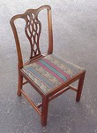 PERIOD CHIPPENDALE MAHOGANY SIDE CHAIR: Curved top rail centering a carved Prince of Wales Crest over a pierced carved center slat. 36"h, the seat is 20" at the widest. | 250 |