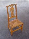 A MAPLE PERIOD CHIPPENDALE RUSH SEAT CHAIR, Ca. 1790: From a Shaker Community in Ohio. Shaped crest, pierced carved center slat featuring a heart. 42 1/2"h. | 325 |