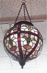HANDEL (ATTRIBUTED) HANGING STAINED GLASS GLOBE: 12"dia, acorn finial, 14" to 24" with chains. | 1,700 |