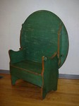 EARLY CHAIR TABLE: Green painted finish on all but the table surface. Storage bench seat. 47 1/2" dia. | 475 |
