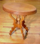 VICTORIAN WALNUT OVAL TOP LAMP TABLE: Featuring a center finial between 4 shaped legs. | 150 |