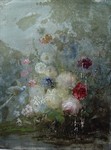 PAIR OF LATE 19TH EARLY 20TH C O/WOOD PANEL FLORAL STILL LIFES: Larger of two depicts a small blue bird fluttering by the bouquet and is faintly signed lower left Dulac?, 10 3/4" x 8 1/4". Smaller of pair depicts a floral bouquet with birds nest and eggs, no visible signature, 9 1/2" x 7 1/4". Newman Gallery labels affixed verso to each. Condition - Both pieces will need a through cleaning, paint loss due to age visible in attached pictures. | 300 |