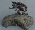 KAUBA, Karl, (American, 1865-1922): Crouching Indian warrior with bow and arrow, polychrome Bronze, 4 1/2"h., mounted on rock plinth, signed on leg. | 350 |