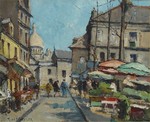 LE FORESTIER, Rene, (French, 20th C): Parisian street scene depicting outdoor cafe with artists at work, O/C, 18" x 21 1/2", signed lower left. | 250 |