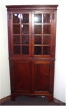 EARLY 20TH CENTURY 4 DOOR CORNER CABINET: Cherry cabinet having a two door 16 light upper cabinet over two door shelved lower cabinet with inset panels. H strap hardware of the period, cut out shaped bracket feet. Cabinetry in two sections, 74"h. x 34 1/4"w. From the estate of Elton Hoyt II. | 1,150 |