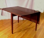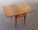FEDERAL HEPPLEWHITE DROP LEAF TABLE CA 1800: Solid mahogany table with slightly tapered legs. 28 3/4"h., the top is 45"l. and 16 1/2"w. with 17 1/2" leaves. | 200 |