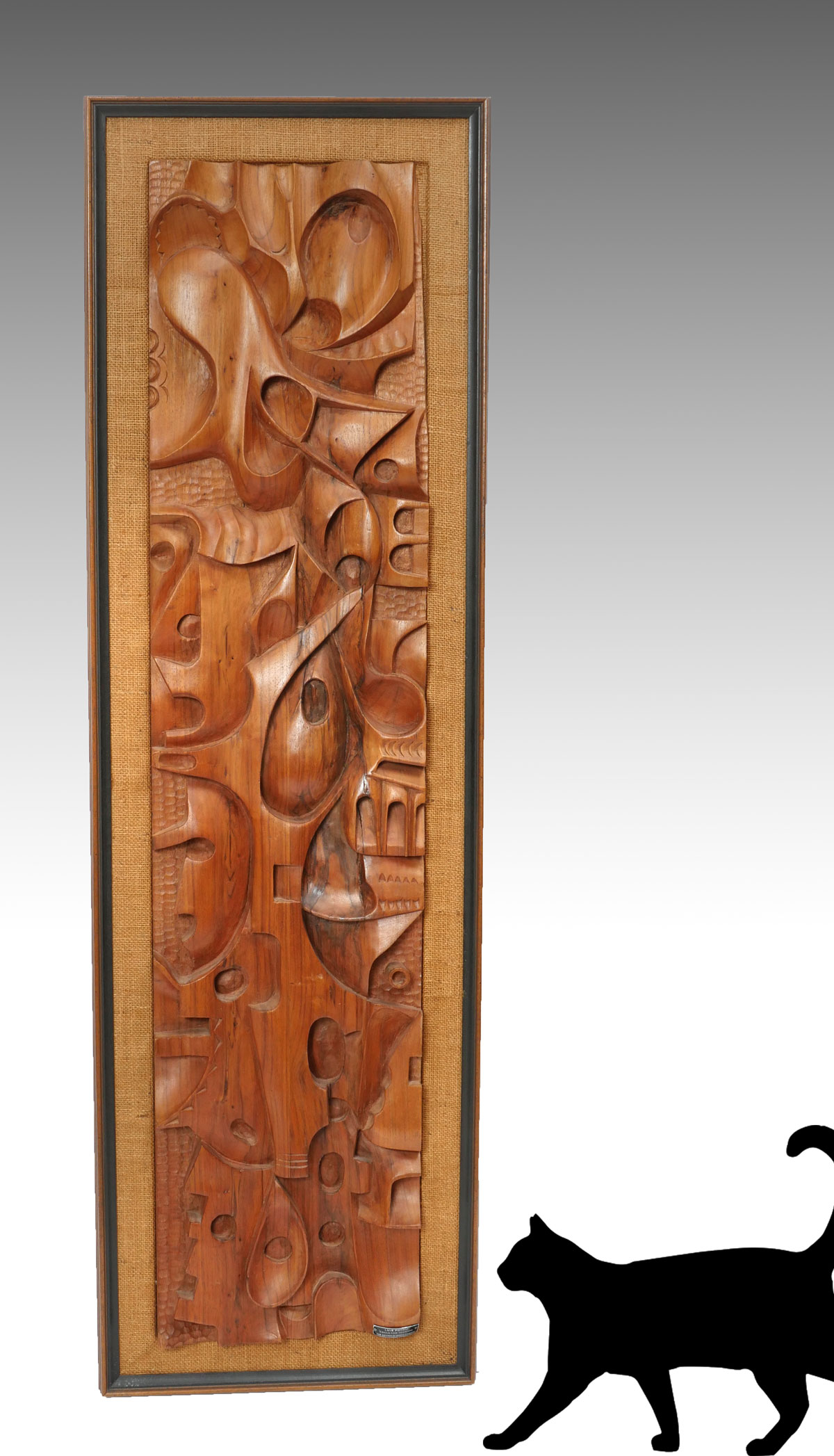 POTOSI, Luis, (Ecuadorian, 20th Century): Abstract Wood Carving, 47'' in heigh, 10.5'' in width, applied Luis Potosi label which reads ''Escultor Tecnico, San Antonia de Ibarra, Ecuador'', framed, 51.5'' x 15.5''.