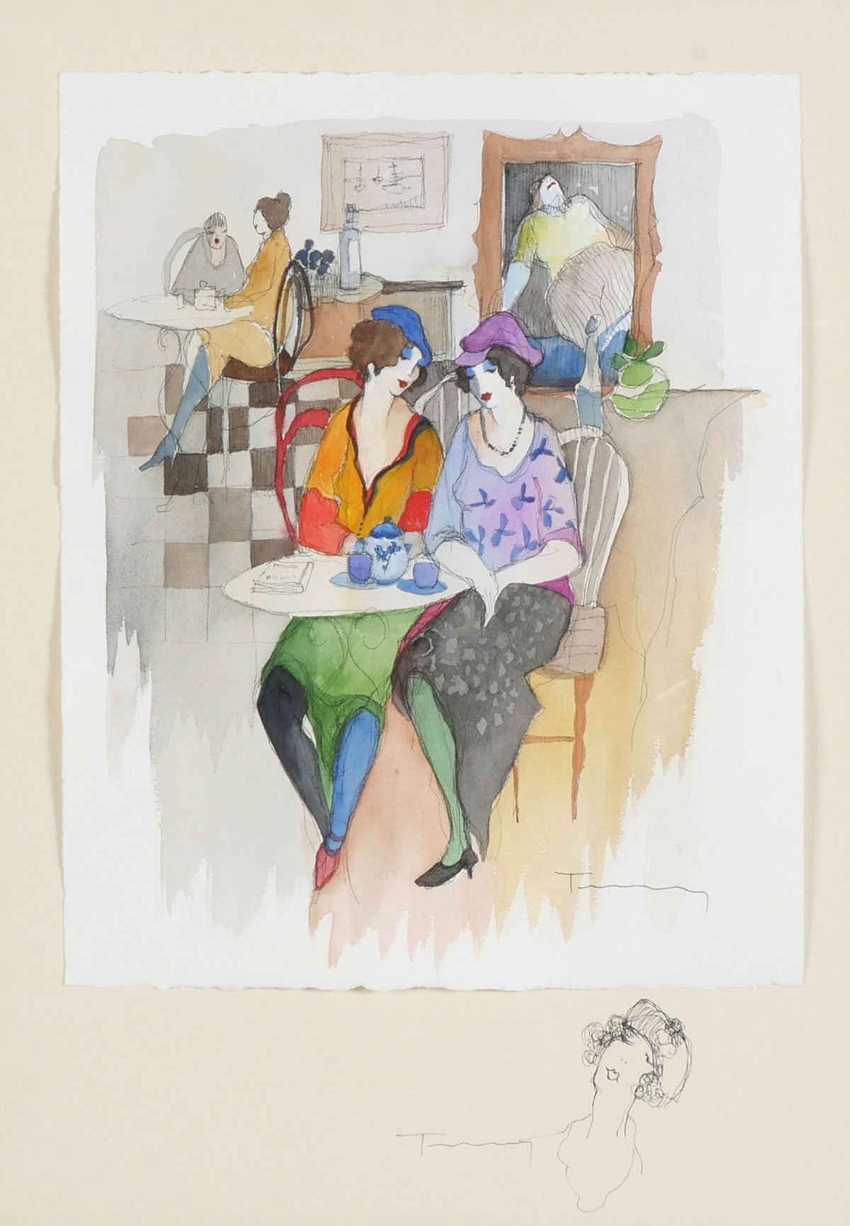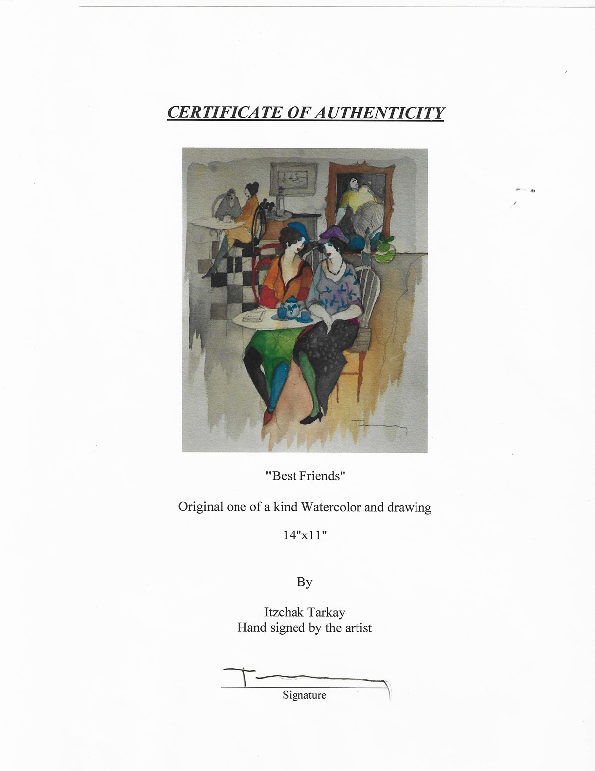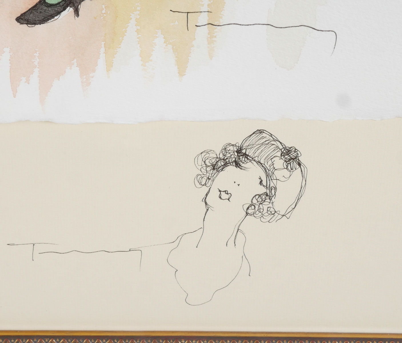 TARKAY, Itzchak, (Israeli/Serbian, 1935-2012): ''Best Friends'', Watercolor, 15.5'' x 13.5'', signed lower right, vignette pen and ink on the mat also signed, framed, 34.5'' x 29''.