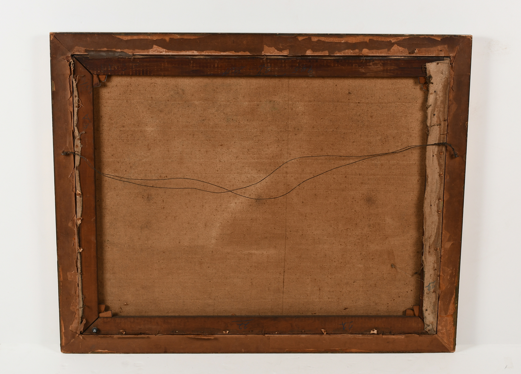 CONDITION: Original, needs cleaning, scattered craquelure, frame shows minor wear.