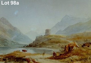 FIELDING, Anthony Vandyke, Copley, (1787-1855), British, W/C titled "Dolbadarn Castle", signed bottom middle, Copley Fielding, 7" x 10". |