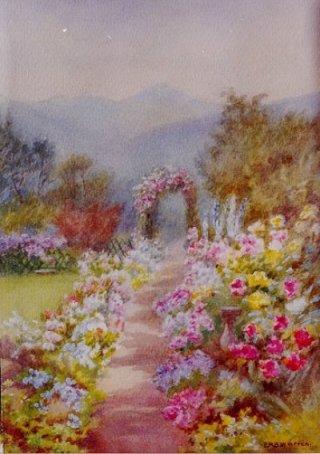 WARREN, Emily Mary Bibbens, (Canada, 1869-1956): Garden scene with abundant floral bloom, w/c, 11 1/2" x 8", SLR E.M.B. Warren. Estimate $400.00-$600.00. |