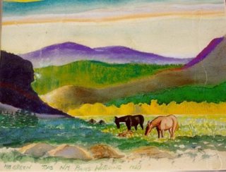 GREEN, Hiram Harold (Buffalo, N.Y. 1865-1930): "Ponies Watering", W/C and pastel, 7 1/2" X 9 1/2", SLL H.H. Green, D. 1920. Estimate $100.00-$300.00. |