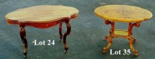 MAHOGANY 4 LEGGED LAMP TABLE: Pie crust, with lyre base. |