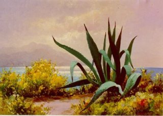 SULTANOV, SHURAT(?)(Middle Eastern, 20th C.): O/B, 13 3/4"x18 3/8" (sight), SLR and inscribed "Shubi". Eastern European advertisment printed verso. Est. $100.00-$300.00. |