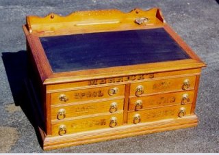 OAK BOX: 7" X 14" box with lift top and bottom drawer. |