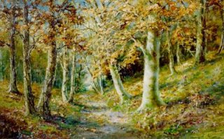 WAY, Charles Jones, (Canada, 1835-1919): Lush wooded lakeside scene with mountain range in background, w/c, 7 5/8" x 11", SLR C.J. Way. Estimate $1,000.00-$2,000.00. |