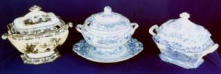 THREE PIECE LOT OF BLUE & WHITE BLUE ONION PORECELAIN: Note: damage to all pieces. |