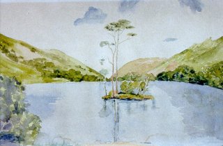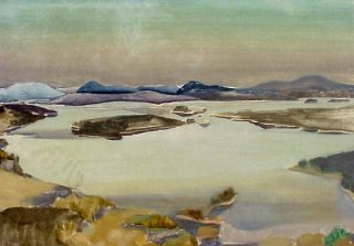 MITCHELL, William, (Scottish, 20th Century): "Loch Eiil in the County of Inverness", depicting a waterside landscape, W/C, 13 1/2" x 21 1/4" , titled verso, SLR. Note: Slight water damage to bottom portion of picture. Est. $200.00 - $400.00. |