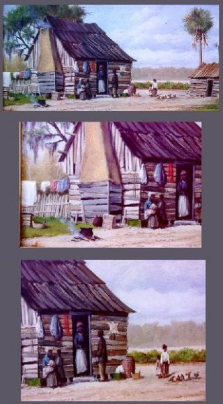 3 HAND COLORED FRAMED PRINTS: "The Rest on the Hill", "Cottage Children" and "The Rat Hunters". |
