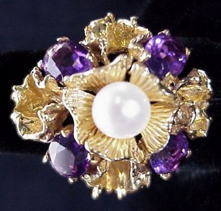 PEARL AND GOLD CIRCLE BROOCH: 10 pearls of 5mm. size set in a classic 14K yellow gold. |