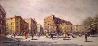 "THE WRANGLER", BRONZETONE CAST SCULPTURE BY MICHAEL GARMAN: Famous for his multi-figure sculpted cityscape scenes. 16"h. Signed Michael Garman and dated 1965. |
