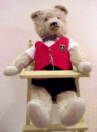 ROYAL BAYREUTH RED DEVIL: Most unusual red devil with arms stretched across the diameter. Blue mark, 2 1/2"h. x 2 1/2"dia. Please note rim chip. |